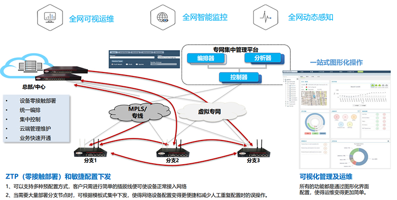 去中心化:SD-WAN 设备部署在整个组织的网络中,减轻了总部网络检查和保护所有入站和出站网络流量的压力。